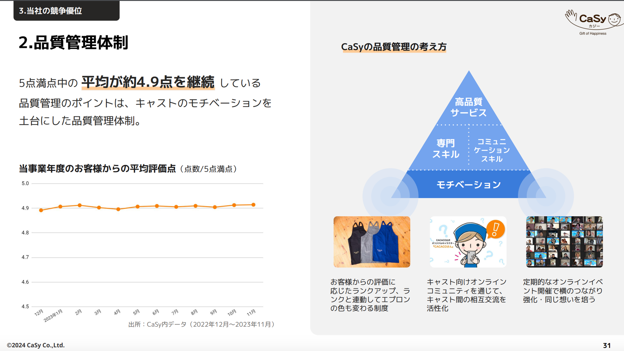 最後に品質管理体制のパートでは、顧客評価の平均点推移を表している。
